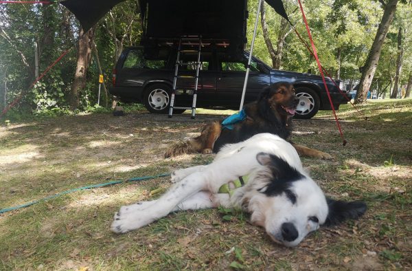 Hund wie Bruno sind gut im pause machen: Sobald wir uns hinsetzen, legt er sich hin und schläft bis es weitergeht. Andere Hunde tun sich wesentlich schwerer damit runterzufahren und brauchen ggfs. etwas Unterstützung um wirklich Pause zu machen.