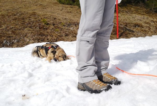 Hier gilt Leinenpflicht wie vielerorts in Tirol. Mit der Schleppleine sind wir prima klargekommen.