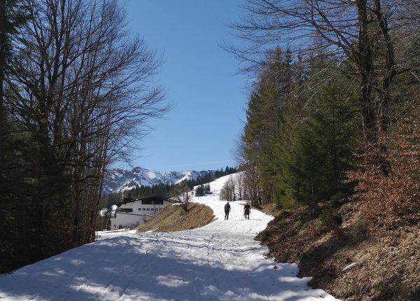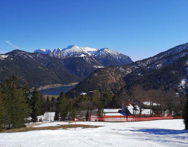 Startpunkt unserer Wanderung ist der schöne und topgepflegte Alpen Caravan Park Camping Achensee in Achenkirch direkt am Seeufer. Über Seewinklstraße, Zenzstraße und Oberautalstraße wandern wir zunächst eben, dann bergauf zum Wellnesshotel „Das Kronthaler“, das sich mit seiner Holzfassade harmonisch in den Berg einfügt. Wenig später beginnt der präparierte Winterwander- und Rodelweg. Ab jetzt geht`s nur noch mal stramm, mal gemächlich den Berg hinauf. Der Weg bleibt stets nahe der Skipiste, die wir immer wieder kreuzen müssen. Hingucken! Skifahrere, Rodler und Wanderer mit und ohne Hund treffen sich schließlich auf der Sonnenterasse des Riederbergstüberls. Hier lässt es sich prima lange aushalten. Rückweg wie Hinweg.