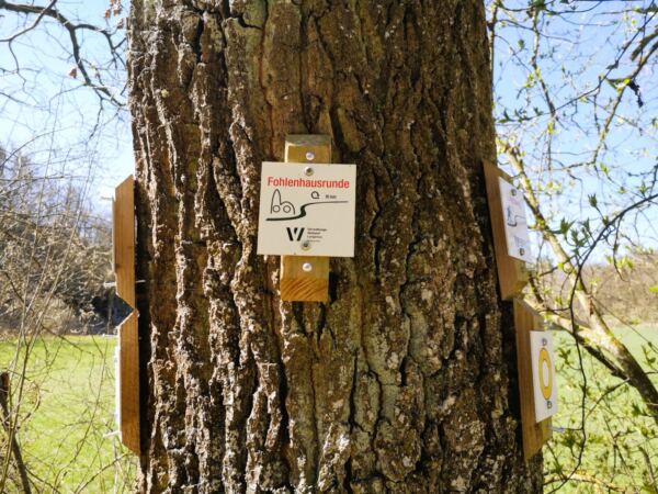 Ausgangspunkt unserer Tour ist der Wanderparkplatz Salzbühl bei Bernstadt. Hier lässt sich auch bequem ein Wohnmobil abstellen. Wir folgen dem kleinen Teersträßchen bergab. Vor der Brücke über die Lone biegen wir rechts ab auf den Wanderweg. Von nun an folgen wir immer dem Wegweiser „Fohlenhausrunde“.