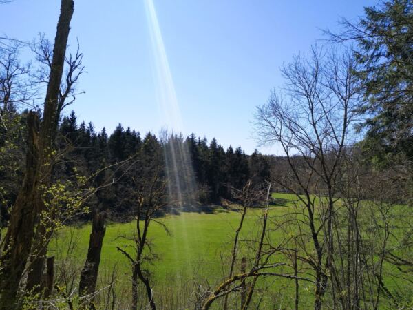Der Wanderweg führt uns nun in einigen großen Schleifen zwischen Wald und Feld zurück zum Ausgangspunkt.