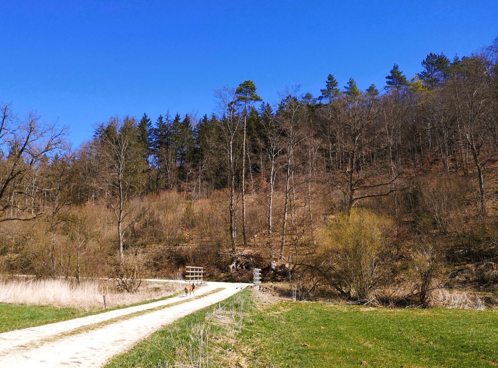 Zwischen Ulm und Heidenheim, eingebettet in die sanften Hügel der Schwäbischen Alb, liegt das Lonetal, eine der ältesten Kulturlandschaften Europas. In den umliegenden Höhlen wie der Hohlenstein-Stadel wurden die ältesten Kunstwerke der Menschheit gefunden, darunter die berühmte „Löwenmensch“-Skulptur. Diese Wanderung zum Fohlenhaus gehört zu den schönsten Rundwanderungen im Lonetal. Sie bietet unserem Hund viel Natur – und uns spannende Rückblicke in die Urzeit. Schön bei jedem Wetter. 🦖🐕🍃