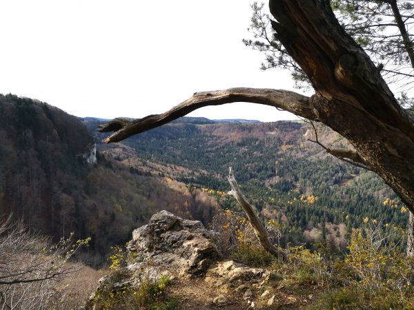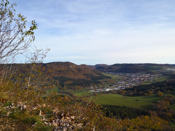 Wir starten morgens in Albstadt-Laufen am Parkplatz der Traufganghütte Brunnental, wo sich auch ein Wohnmobil problemlos parken lässt. Wir laufen vorbei an der Traufganghütte, bergab und über eine Brücke über den Lautenbach, der uns ein Stück des Wegs begleiten wird. Rechts ab geht es zwischen Wiesen, schließlich mäßig bis ordentlich steigend in den Wald hinauf. Wir orientieren uns am Wegweiser, verlaufen unmöglich. Der Waldweg wird schmaler, die verwitterten Felswände ragen auf. Wir erreichen die Hossinger Leiter. Über Stufen und zwei Gitterbrücken erreichen wir den schönen Grillplatz mit Schutzhütte und tragen uns in das Gästebuch ein. Weiter hinauf folgen wir den Stufen und gönnen uns wenig später eine kurze Pause auf der Bank mit Blick ins Tal. Weiter bergauf geht`s durch den Wald, bis sich eine Lichtung auftut. Zwischen Wald und Wiese erreichen wir den Rastplatz am Kübelhansfelsen. Von hier aus geht es rechts am Feld entlang hinauf zum Waldrand. Weiter bergauf durch den Wald erreichen wir den Triebfelsen, ein Aussichtsplateau ebenfalls mit Bank und wunderbarem Weitblick. Ein letzter kurzer Aufstieg, dann geht es weitgehend eben durch den Wald. Zwischendurch locken weitere Bänke mit Ausblick zu kurzen Pausen. Schließlich erreichen wir den Gräbelesberg, auf dem die Kelten einst Festungsanlagen errichteten. Es lohnt sich, die kleine Runde um das Plateau mitzunehmen. Von hier oben bieten sich wunderschöne Blicke über das waldreiche Steinbachtal bis in den Schwarzwald. Nach der Runde um das Plateau folgen wir dem Wanderweg recht steil hinab durch den Wald, vorbei an einem kleinen Felsenmeer zum Ausgangsort.
