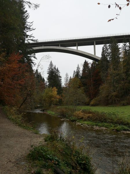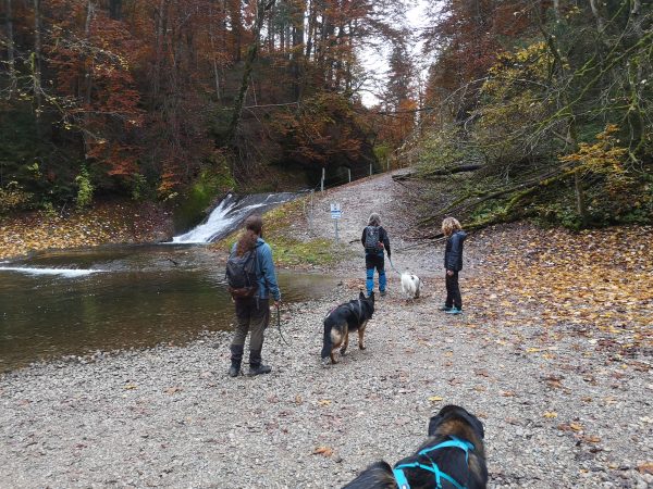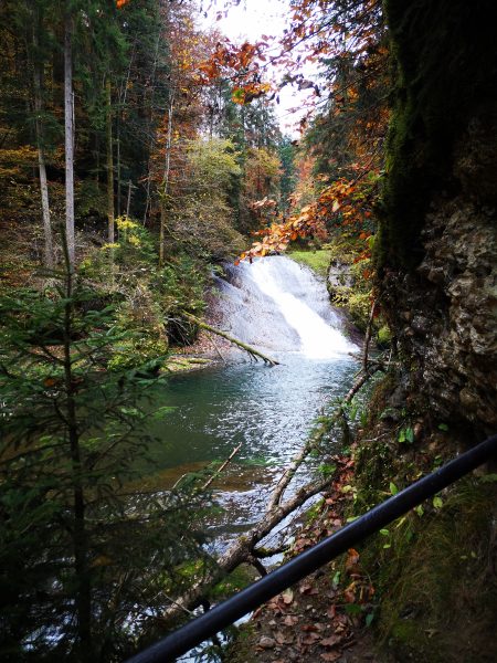 Nach einem weiteren Wasserfall wechseln wir die Flusseite, steigen ein paar Höhenmeter auf und wandern dann über Riedholz zurück zum Parkplatz.