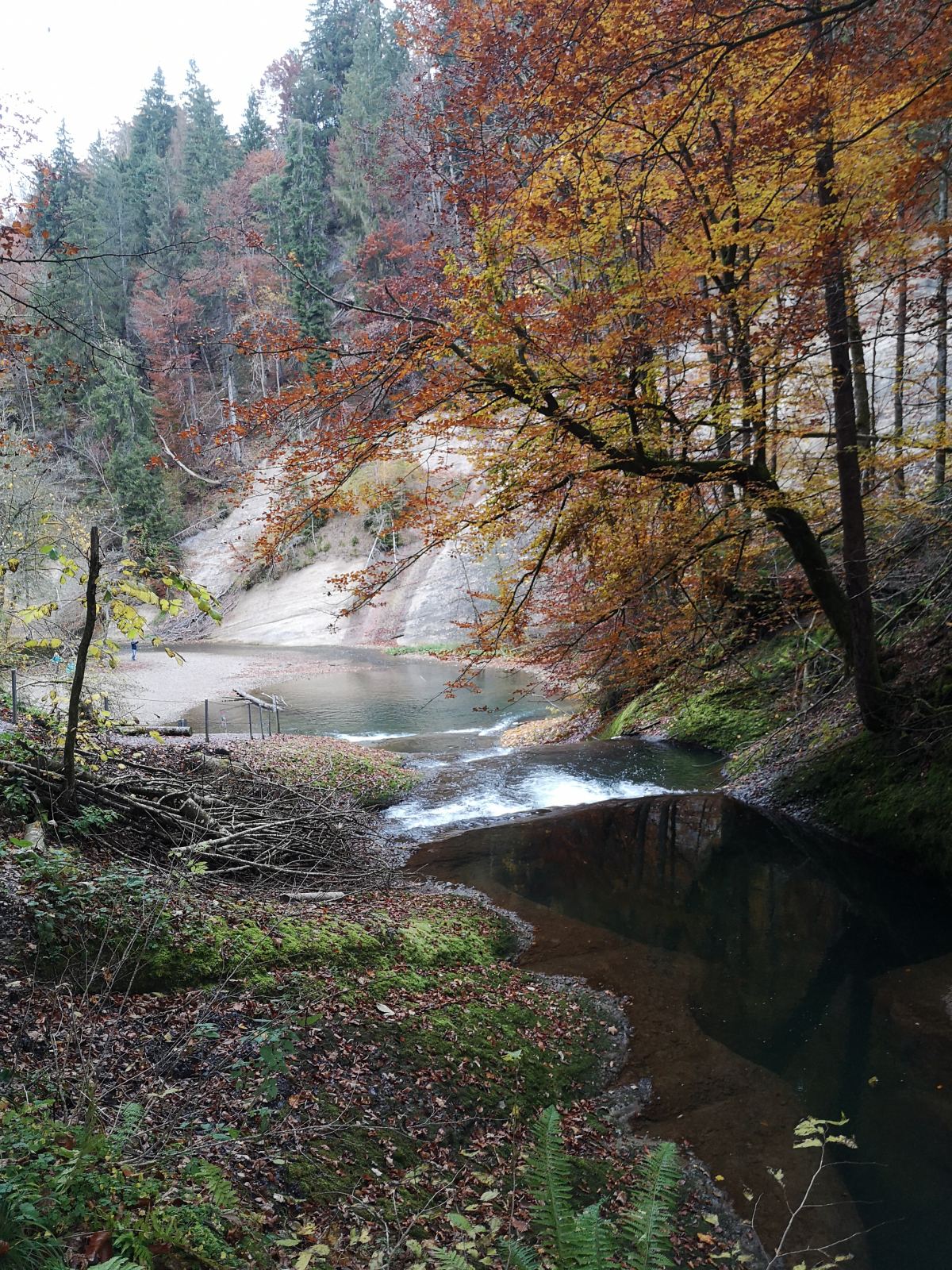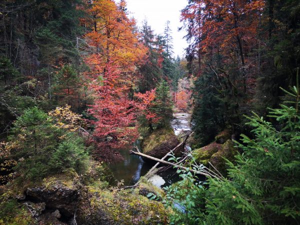 Es ist Ende Oktober and einem regnerischen und eher kalten Tag, somit treffen wir nicht auf allzu viele andere Wanderer. Wie besucht der Eistobel an schönen Sommertagen ist, können wir leider nicht sagen.