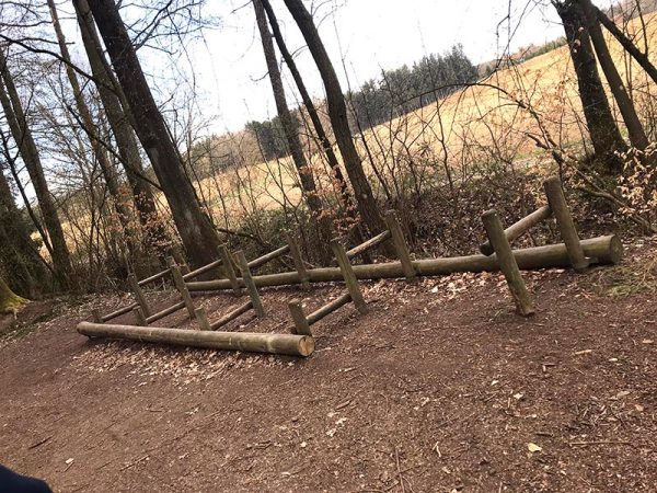 Auf dem Weg liegen einige Trimm-Dich-Geräte, die ihr für Übungen mit eurem Hund nutzen könnt.