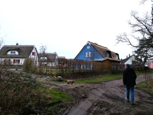 Weiter geht`s. Über den „Boddenweg“ unterhalb der Hafenräucherei kommen wir wieder zur Dorfstraße, der wir bis zu ihrem Ende folgen. An einer T-Kreuzung biegt die Dorfstraße rechts ab und mündet in die Wittower Straße. Wir überqueren die Straße und laufen durch Juliusruh zum Strand. Ab hier Rückweg wie Hinweg.