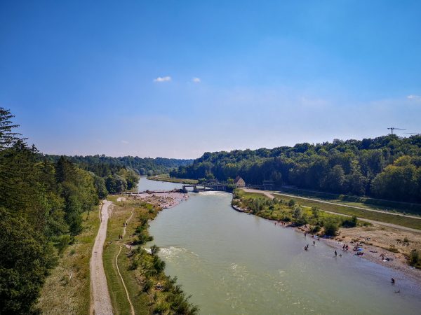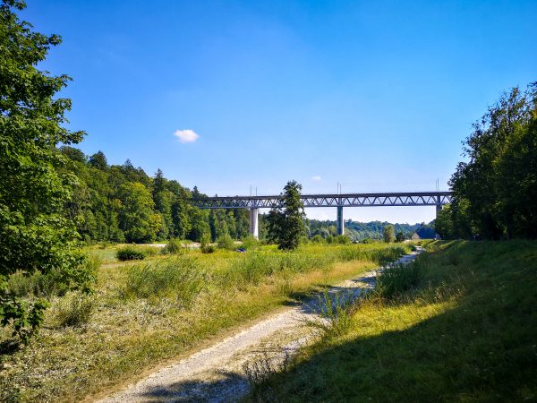 Über den Marienklausensteg wechseln wir auf das andere Isarufer und laufen dort nach Süden bis zur Großhesseloher Brücke. Über diese geht es wieder aufs Hochufer und dann zurück zum Ausgangspunkt. Entlang der Hochleite bietet sich noch eine Einkehr im Biergarten der Menterschweige an.