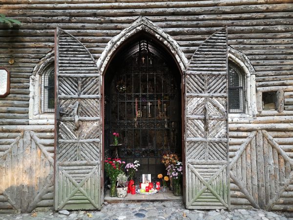 Wir starten am Hochufer, von dort geht es nach unten zur Marienklause. Die kleine Kapelle wurde 1866 von Wassermeisters Martin Achleitner errichtet, zum Dank dafür, dass er bei seiner oft gefährlichen Arbeit an der Isar immer heil davongekommen ist. Die Kapelle ist ganz aus Holz, fast immer brennen dort Kerzen, die von Vorbeikommenden angezündet wurden.