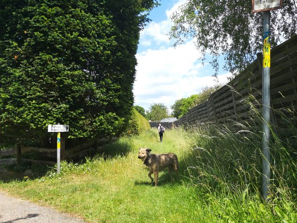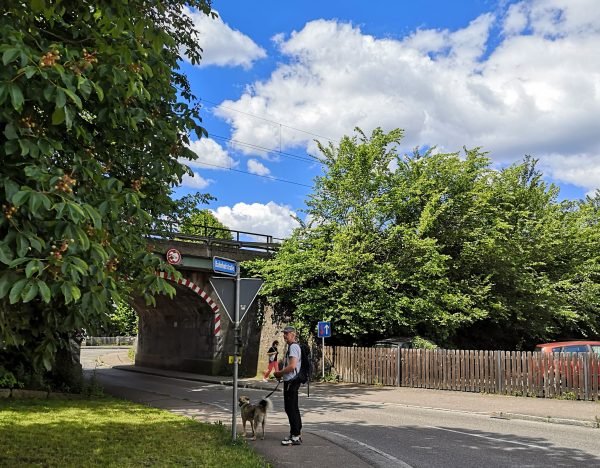 An der Bahnunterführung treffen wir auf unseren Wegweiser. Schlaufe 11.