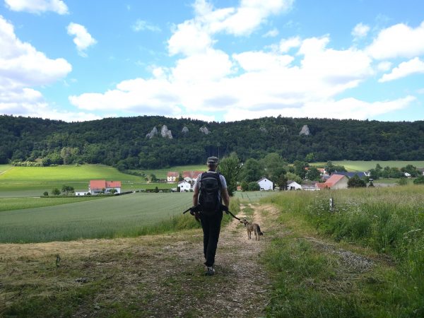 Diese abwechslungsreiche, durchweg bestens ausgeschilderte Runde bringt uns zu allen Naturschönheiten, die für den Naturpark Altmühltal so typisch sind: Wacholderheiden, steil aufragende Jurakalkmassive, Burgruinen, Wasserläufe, Wildblumenwiesen, Wald. Und immer wieder grandiose Tiefblicke auf das Tal, das die Urdonau über Millionen Jahre formte. Ganz viel Abwechslung und Freiraum für Mensch und Hund. Und obendrauf gibt es noch eine prima Einkehrmöglichkeit auf halbem Weg: das Ingolstädter Naturfreundehaus. Für einen entspannten Tagesausflug kann man sich kaum mehr wünschen (zugegeben: unser Hund hätte unterwegs gerne noch mehr Spielkameraden getroffen :-)) Abrunden lässt sich das Ganze mit einem Bummel durch das pittoreske Dollnstein an der Altmühl, beliebter Startpunkt von Bootwanderern.