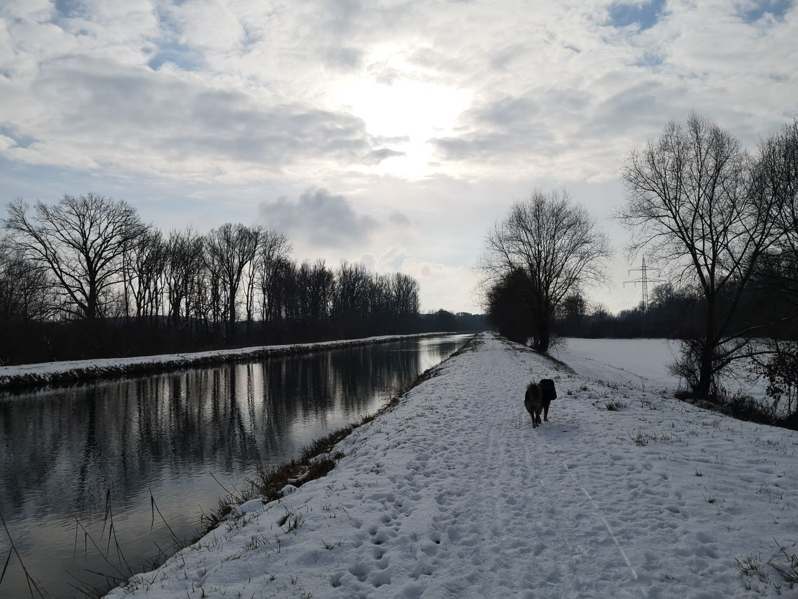 In Weng geht es über die Brücke, am Kraftwerk Weng vorbei und dann links nach oben ans Kanalufer. Dann laufen wir kerzengerade dahin bis zur Brücke kurz vor Unterbruck. Auf der anderen Seite des Amperkanals geht es wieder zurück, die letzten Meter entlang der Fraunbergstraße.