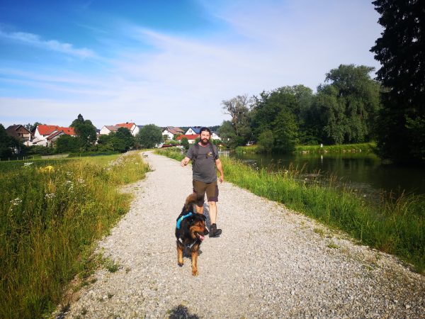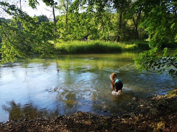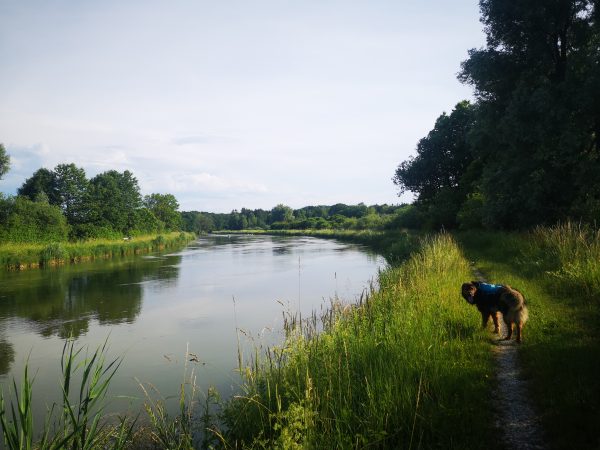 Das Amperufer eignet sich nicht überall als Hundestrand, wir treffen aber regelmäßig auf Stellen mit flachem Ufer.