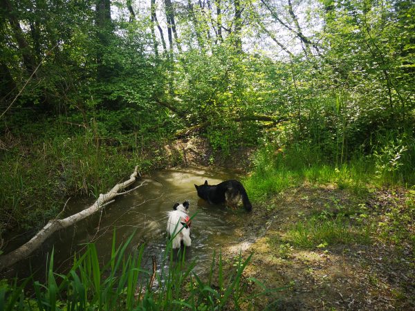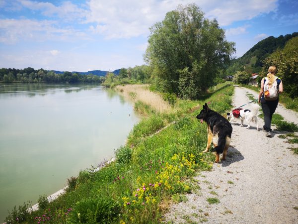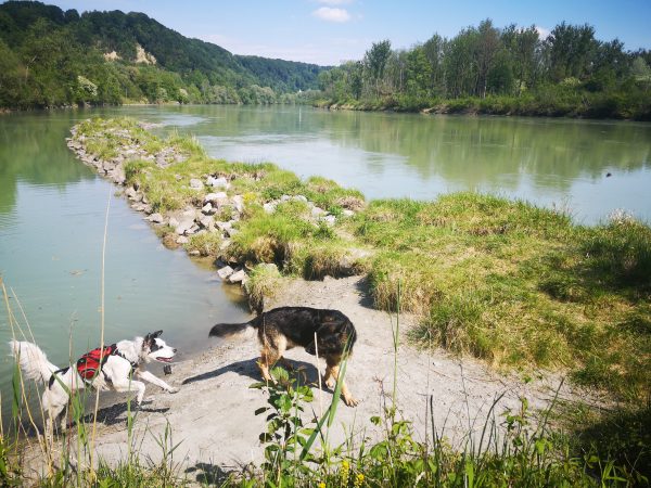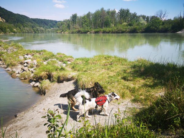 Eine einfache Tour, die uns von Marktl aus am Inn entlang, vorbei an der Alz-Mündung, führt. Die Strecke verläuft durchgehend am Wasser, das Ufer ist zwar recht steil, die Hunde finden aber regelmäßig flache Stellen, die sich zum Trinken und für eine kurze Abkühlung eignen.