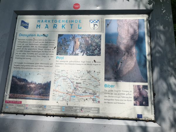 Der breite Weg führt durch eine wunderschöne Aulandschaft, in der laut Infotafel unter anderem Biber und der Pirol heimisch sind. Beide haben wir an diesem Tag leider nicht gesichtet, dafür aber zahlreiche andere Vögel.
