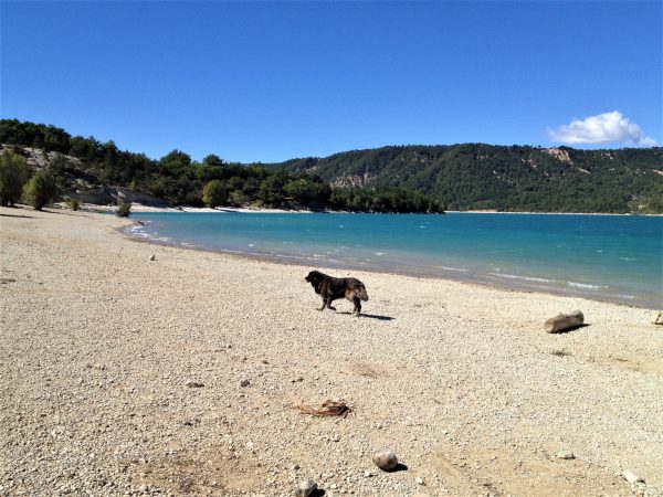 Als der Verdon aufgestaut wurde, entstand der fast 22 Quadratkilometer große Lac de Sainte-Croix, der zweitgrößte Stausee Frankreichs. Er liegt am Eingang zur berühmten Verdonschlucht (eine der tiefsten Europas) nahe des Städtchens Moustiers-Sainte-Marie, das wegen seiner Schönheit und der kühn in die Felsen gehauenen Häuser und Treppen ebenfalls berühmt ist. Auch der Stausee ist kein Unbekannter, beliebt bei Surfern und Seglern. Außerhalb der Saison geht es hier jedoch recht ruhig zu. Ein schöner Ort für einen Spaziergang – mit einem kühlen Bad, wer mag. Sonne und Schatten wechseln sich ab.