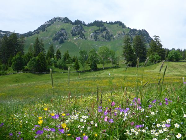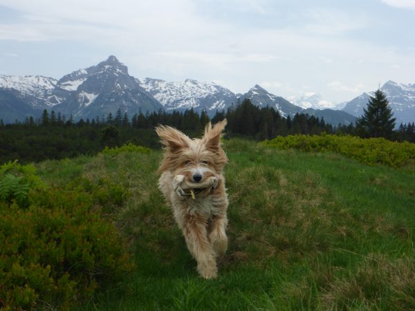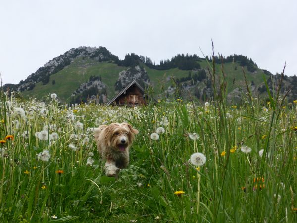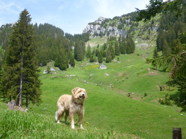 Oberhalb von Weesen liegt die Sonnenterasse der Schweizer Riviera: das Ski-und Wanderzentrum Amden. Unzählige Touren gibt es hier, diese Tour zählt mit Hund sicher zu den schönsten. Sie führt über ausgedehnte Alpweiden und durch geschützte Moorlandschaften, vorbei an kleinen Moortümpeln, die Fröschen, Bergmolchen, Insekten und Algen einen idealen Lebensraum bieten. An klaren Tagen genießen wir entlang der Strecke eine atemberaubende Fernsicht ins Toggenburg, die Glarner Alpen und auf den Säntis, mit knapp 2.502 Metern der höchste Berg im Alpsteingebirge. Los geht’s an der Berggastwirtschaft „Am Holzstübli“. Die Straße darf nur benutzten, wer dort auch einkehrt. Sonst bleiben die vielen öffentlichen Parkplätze im Dorf Amden. Von dort aus verlaufen Wanderpfade parallel zur Straße, die im Frühling und Sommer durch schöne Blumenwiesen führen. Der Amdener Höhenweg verläuft fast gänzlich in der Sonne. Es gibt kurze schattige Abschnitte. Der Weg durch Wiesen und Wald- oder Moorlandschaften ist gut begehbar, meist sogar mit Kies befestigt oder gar geteert. Es geht mäßig bergauf und bergab, also auch für ungeübte Wanderer gut zu meistern. Leinenpflicht gilt im Moorgebiet, sonst kann der Hund frei laufen, wenn er nicht jagt. Gerade zu Beginn der Wanderung ist es recht sicher, da das Gelände weit und offen ist und in Alphüttennähe wenig Wild zu erwarten ist.