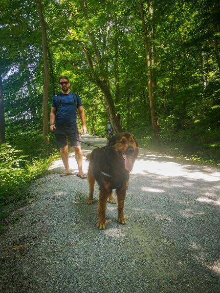 Kurz vor der Großhesseloher Brücke machen wir noch eine letzte Badepause, bevor wir die Isar erstmal verlassen: Es geht bergauf aufs Hochufer. Auch wenn das dichte Blätterdach der Isarauen keine großen Ausblicke zulässt: Hier oben ist es herrlich ruhig und schattig.
