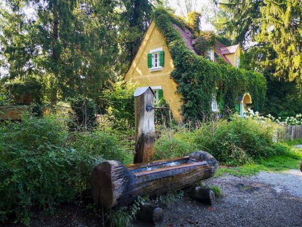 Direkt daneben liegt der Gutshof Menterschwaige. An diesem vorbei uns rechts ums Eck erreicht man den Eingang des gemütlichen und schattigen Biergartens. Hier liegen unter vielen Tischen Hunde, an mehreren Stellen stehen Wassernäpfe für die vierbeinigen Gäste bereit.