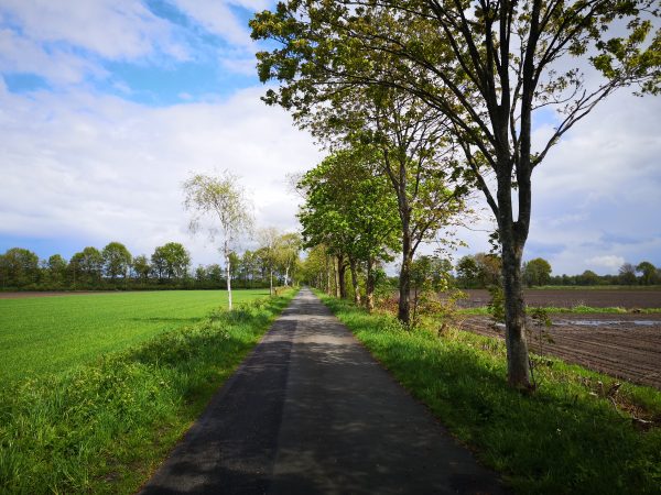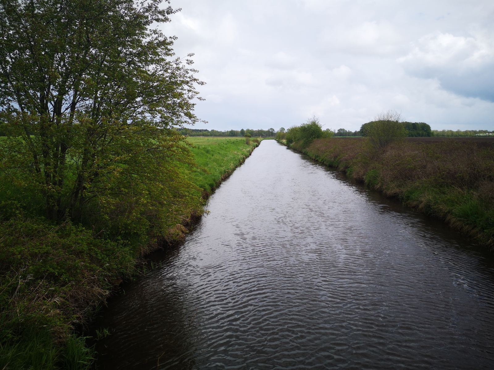 Wir starten am einem kleinen Parkplatz. Von dort geht’s über die Brücke und nach links am Kanal entlang, der uns geradeaus zum Küstenkanal führt.