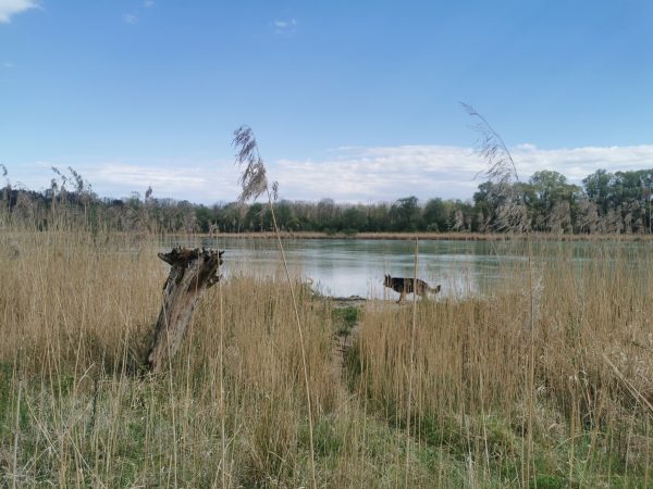 Die Hunde konnten immer ans Wasser und hatten viel Freude im hohen Ufergras.