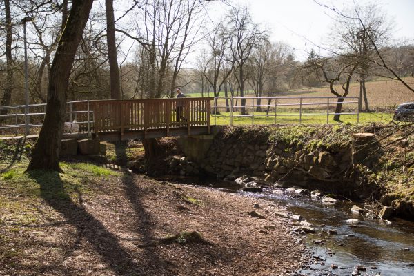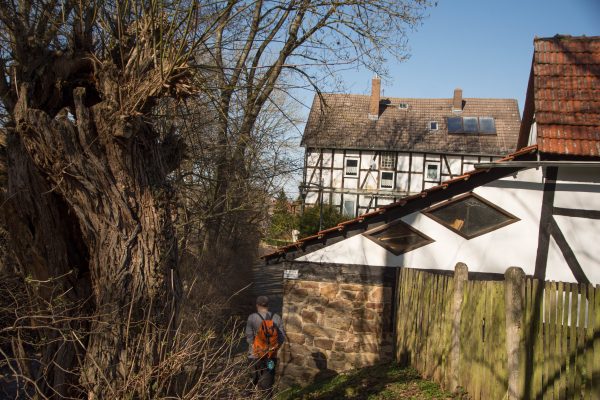 Nächste Station: Das Naturfreundehaus, hier legen wir eine kurze Pause ein. Dann geht’s hoch zum Radweg. Hier sind wir nicht rechts zum Heupelsberg gegangen, sondern links Richtung Vollmarshausen. Durch den idyllischen Ort fließt der Wahlebach hindurch, dem wir bereits begegnet sind.