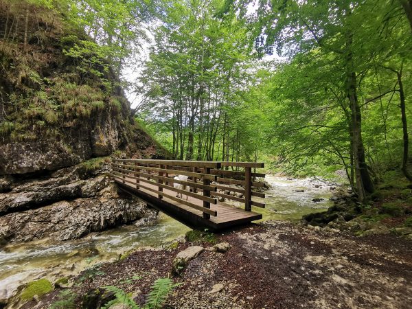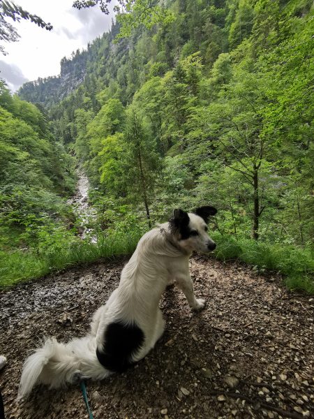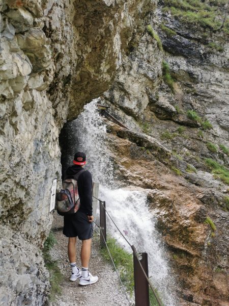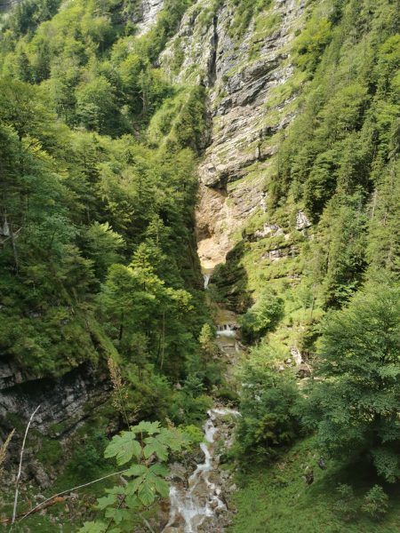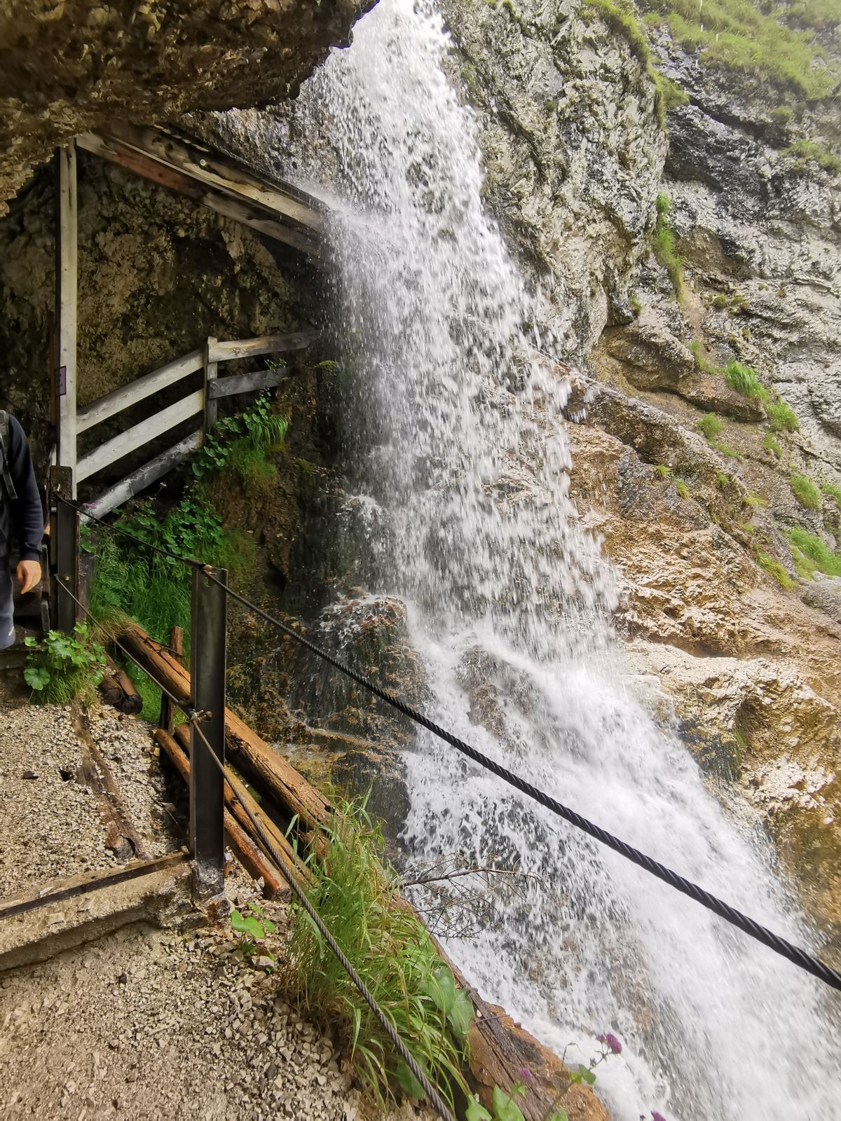 Der erste Teil nis zu einer kleinen Hütte (keine Wirtschaft!) ist auch mit dem Fahrrad machbar. Danach ist etwas mehr trittsicherheit zum Wasserfall gefordert. Kurz vorm Wasserfall betritt mand ann die Republik Österreich. Über einen Holzsteg geht es hinter dem Wsserfall vorbei ins Heutal.