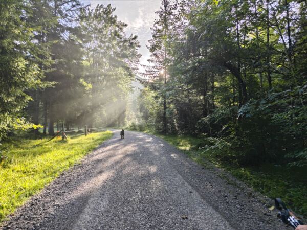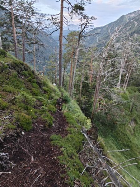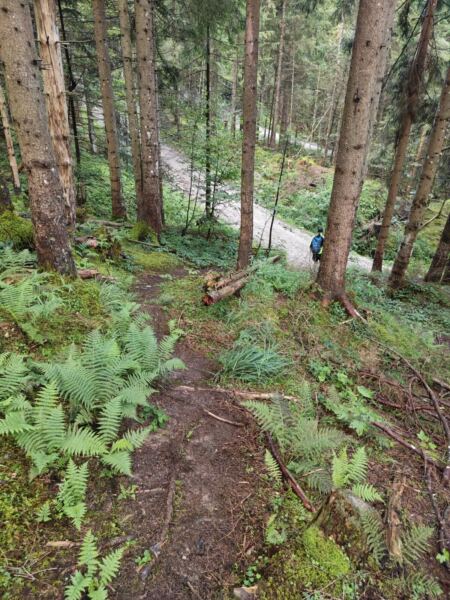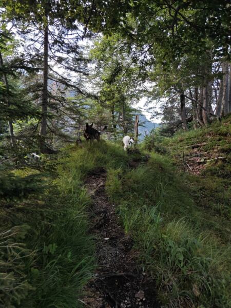 Die ersten 2 km geht der Forstweg fast ohne Steigung dahin. Danach kommt der Anstieg, der aber absolut machbar ist. Nach ca. 4 km der Strecke biegt man auf einen sehr unscheinbaren Weg ab, der durch den Wald führt. Hier wird der Anstieg zum Schluss hin ziemlich steil und das Gelände verlangt trittsicherheit. An dem Tag, als wir unterwegs waren, hatte es zuvor geregnet ; das macht die Teilstrecke ziemlich rutschig!