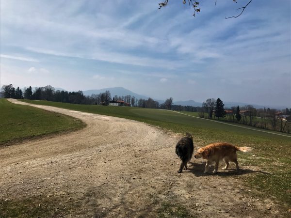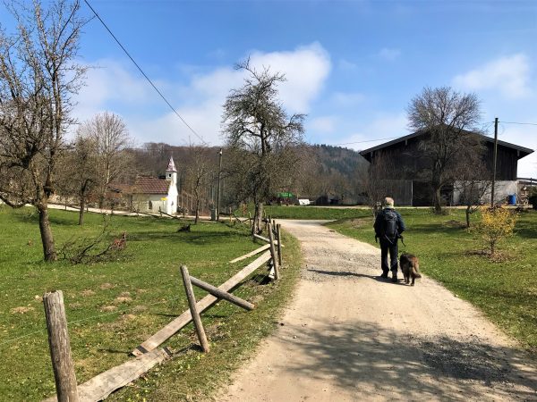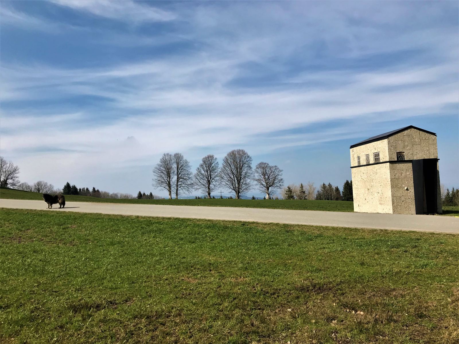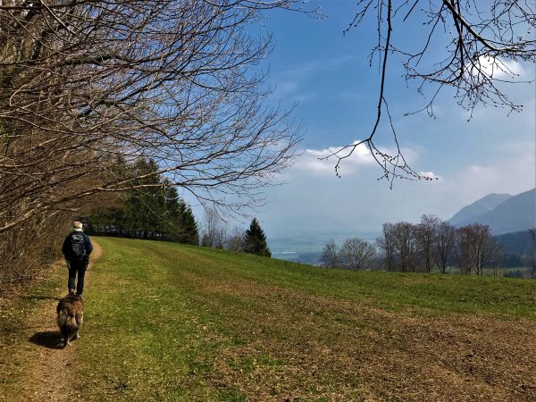 Zugegeben: Diese weitgehend schattenlose Rundtour führt nicht nur über Wiesenpfade, sondern oft über geteerte (und wenig befahrene) Zufahrtsstraßen. Trotzdem lohnt sich die Tour für Mensch und Hund, wenn man sie vor oder nach der Weidesaison geht. Für den Hund, weil entlang des Wegs freie Wiesen liegen. Für den Menschen, weil die Tour Panoramablicke mit Geschichte und Geschichten verbindet. Wohltuend für Herz und Hirn. Ideal für Tage, an denen auf den Höhen noch Schnee liegt. Mehr Ideen für den Urlaub mit Hund in dieser Region findest du hier.