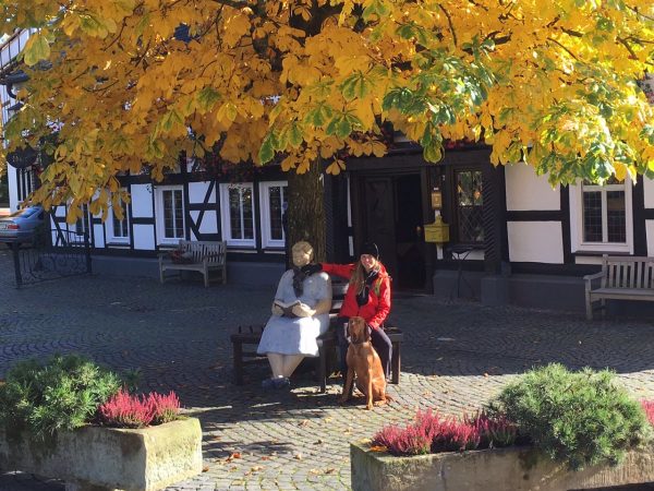 Weiter geht es nach Oberkirchen, ein durchaus sehenswertes Fachwerkdorf. Hier kann man auch gut einkehren. Schön und hundefreundlich sind beispielsweise der traditionelle Landgasthof Schütte im Ortskern (neben Mittags- und Abendtisch gibt es eine reiche Kuchenauswahl) und das Café Knusperhaus, direkt neben der Kirche.