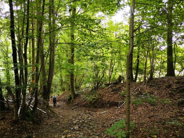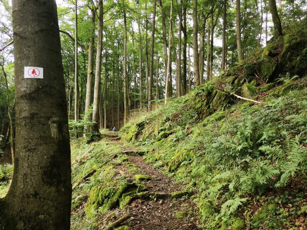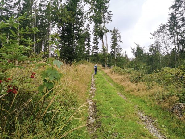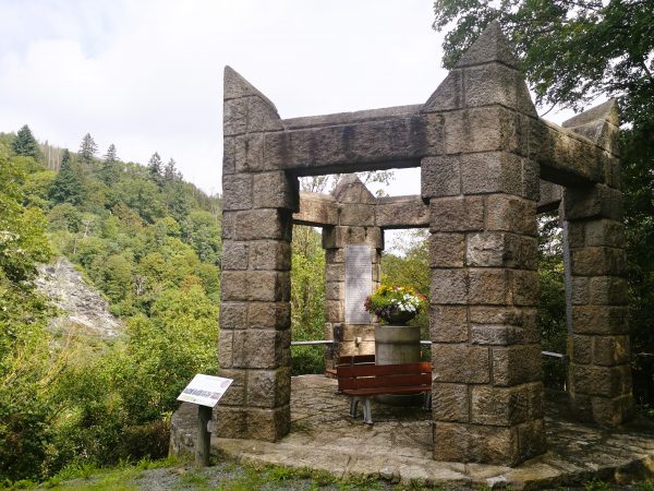 Los geht`s am Parkplatz an der Bahnhofstraße in Bad Berneck. Hier lässt sich auch ein Wohnmobil problemlos parken. Wir verlassen den Parkplatz Richtung Fluss. Über eine Brücke überqueren wir die Ölschnitz. Über die Maintalstraße erreichen wir den Dendrologischen Garten (Rotherspark) mit seinen vielen, teils seltenen und über 100 Jahre alten Baum- und Straucharten. Bergauf steigend kommen wir vorbei am historischen Bergwerk „Beständiges Glück“. Universalgelehrte Alexander von Humboldt testete hier seine selbst entwickelte Grubenlampe – und wäre dabei fast gestorben. Wir steigen weiter bergauf und und halten uns links. Über die Siemensstraße erreichen wir das Kriegerdenkmal. Wenige Schritte weiter geht es rechts in den Wald. Der Weg führt uns schließlich bergab. Wir überqueren den Bärnreuther Graben über eine Brücke. Wir halten uns rechts. Nach wenigen Metern auf einer wenig befahrenen Teerstraße bergauf biegt unser Weg scharf links in den Wald ab.