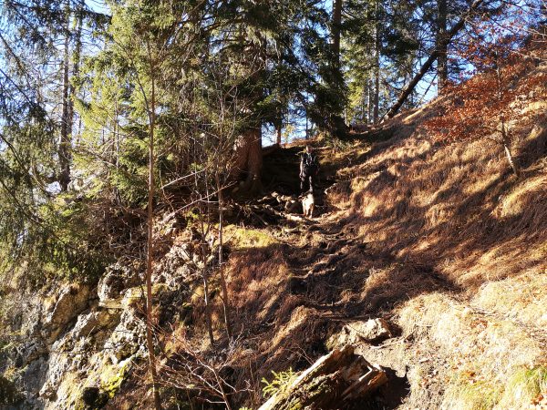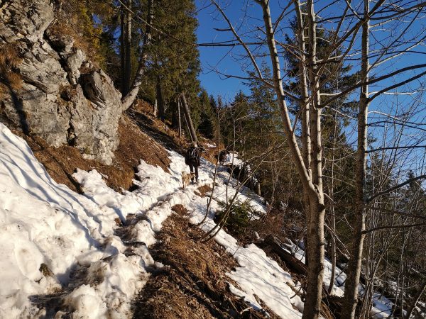 Wieder auf eigenen Pfoten geht`s an der Bergflanke weiter hinauf.