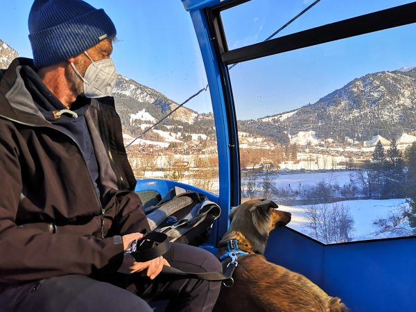 Die Hornbahn eignet sich übrigens wunderbar für die Gondelpremiere eines Hundes. Auch bei Hochbetrieb geht es hier sehr ruhig und diszipliniert zu. Keiner drängt. Und die 8-Personen-Gondeln bleiben jeweils zusammengehörenden Gruppen überlassen. Auch wenn die Gruppe nur aus zwei Menschen und einem Hündchen besteht. All das senkt das Stresslevel für den Vierbeiner.