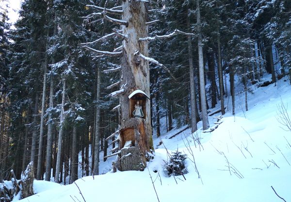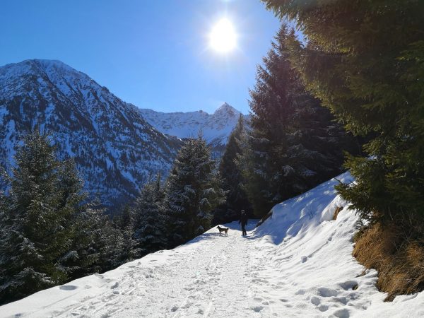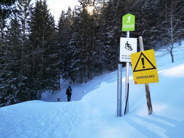 Auf dem Wanderweg sind Schlitten verboten. Stellenweise kann der Weg ein wenig eisig sein.