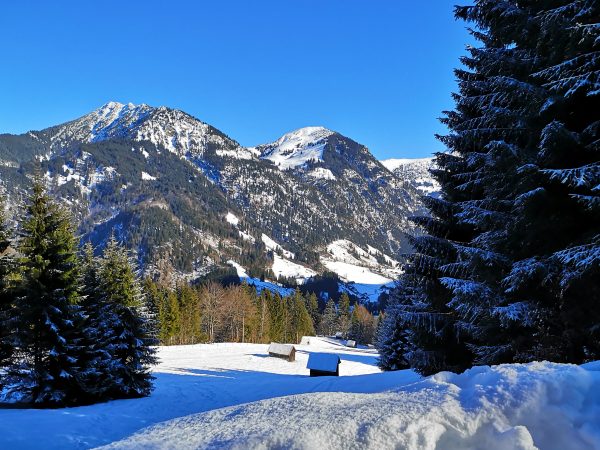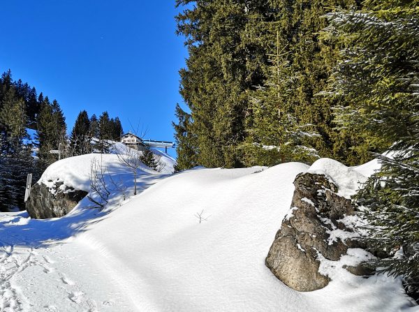 Wer mag, kann die Tour noch mit einem Abstecher zum Aussichtspunkt Burgschrofen verlängern – mit noch mehr Weitblick in Ostrachtal, Illertal und bis zur Hörnergruppe. Dieser Weg wird allerdings nicht präpariert. Wer hier entlang möchte, sollte vorab den Schneebericht checken. Bei unserem Besuch war der Weg wegen Lawinengefahr gesperrt.