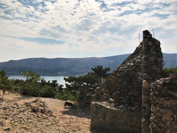 Diese Tour verbindet eine Gassi-Runde an der hoch gelegenen Friedhofskirche Sv. Ivan mit einem Bummel durch die engen Gassen von Baska im Südosten von Krk. Von oben wie von unten bietet sich ein sehr schöner Blick auf die halbrunde Bucht von Baska, auf Berge und Meer. Wer gerne noch ein paar Meter mehr gehen möchte: Am Parkplatz der Friedhofskirche starten zahlreiche Wanderwege über das geröllbedeckte Hochplateau, darunter der „Weg zum Mond“. Diese Touren sind nicht für heiße Tage geeignet, da schattenlos. Mehr Infos zum Urlaub mit Hund auf Krk findest du hier