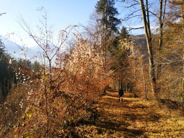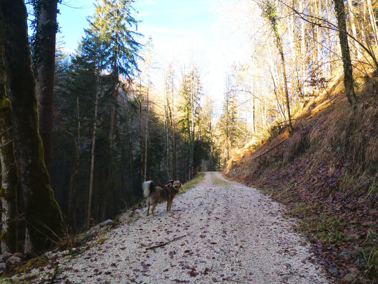 🥾🐾 Unter Füßen und Pfoten: Forstwege, Wiesen- und Waldpfade, kurze Abschnitte über Asphaltsträßchen.
