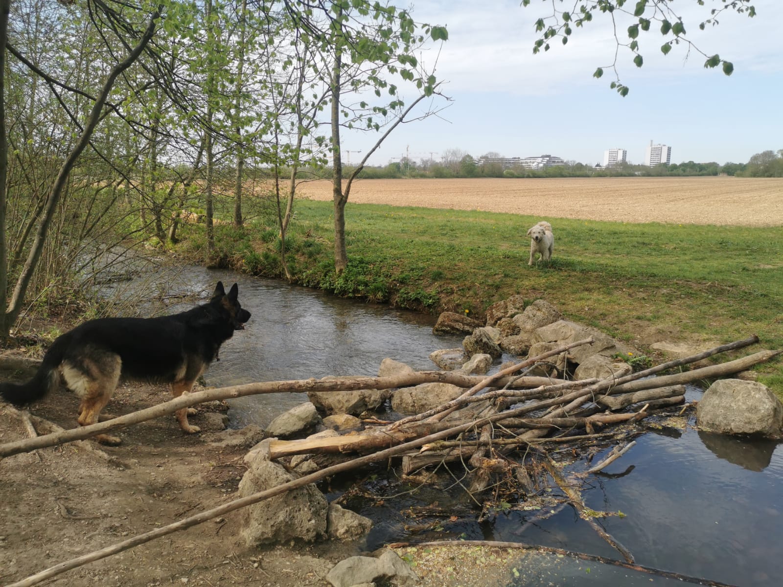 Der Berglwald liegt zwischen Oberschleißheim und Unterschleißheim und ist von beiden Ortsseiten begehbar. Er bietet dem Hund viel Abwechslung und ist für den Vierbeiner eine aufregende Tour. Für die Supersportlichen kann man kann kann beispielsweise einen Trimm-Dich-Pfad mit seinem Hund durchlaufen. Aber auch außerhalb der Hauptwege gibt es viel zu entdecken und zu beschnüffeln. Der ganze Wald wird von einem Bach durchzogen, so bleibt dem Hund immer die Möglichkeit, zu trinken und im Wasser herum zu tollen. Mitten im Wald steht eine Wirtschaft. Im Sommer ist hier ein Biergartenbetrieb und auch ein To-Go-Verkauf für Eis oder ähnliches.