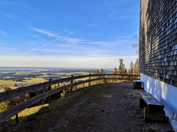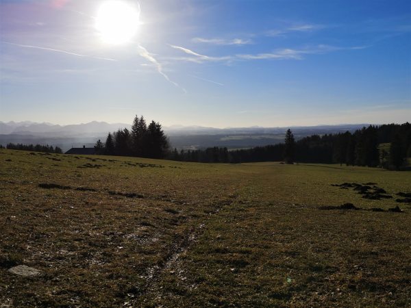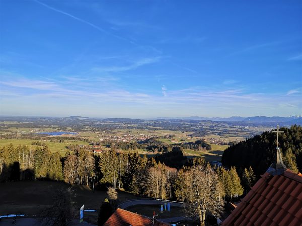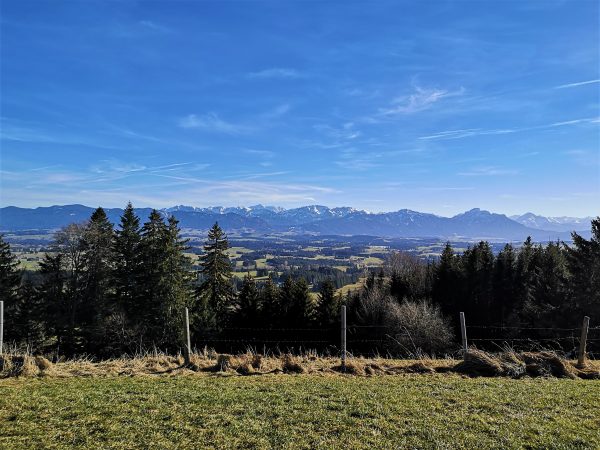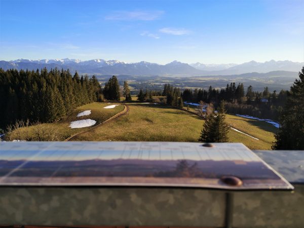 Am Aussichtspunkt Buffernande stehen Picknickbänke. Von hier aus sieht man Forggensee und Richtung Bregenzer Wald.
