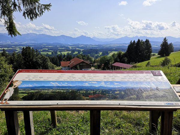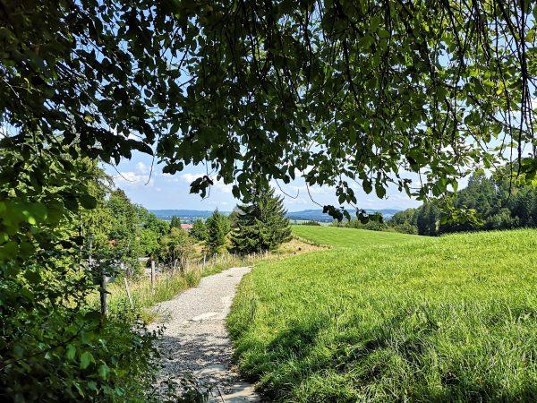 In der Ferne sehen wir den Hohenpeißenberg mit Wetterstation und Radiosendeanlage.