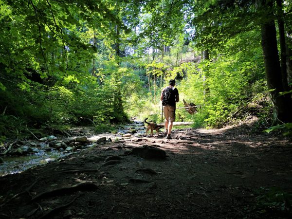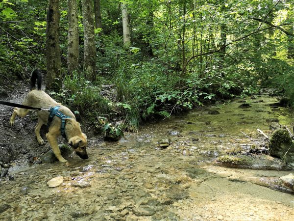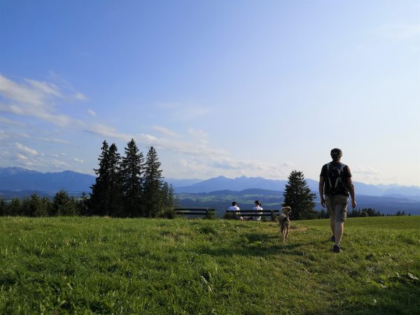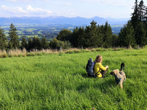 Wir lieben den Auerberg (ca. 1.000 Meter) auf der Grenze zwischen Oberbayern und Schwaben, knapp 100 Kilometer von München entfernt. Hier oben erwartet uns ein Hammerblick über den Bregenzer Wald, Allgäuer Alpen und Forggensee, Ammergauer Alpen, Wettersteingebirge und Wendelstein. Hinauf führen etliche Wege. Dieser hier ist bei Familien mit Kindern sehr beliebt und eignet sich auch für junge, noch nicht alpintaugliche Hunde, die Wasser lieben und viel Energie haben. Wir folgen dem gut beschilderten Pfad durch die wild-romantische, aber harmlose Feuersteinschlucht, danach weiter hinauf den Schildern nach über den wurzeligen und aussichtsreichen Jägersteig zum Gipfel. Auf den weiten Wiesen neben dem Aussichtspunkt Buffernandl lässt sich mit Brotzeit und Bergpanorama wunderbar die Zeit vergessen. Alternative: eine Einkehr im sehr hundefreundlichen Gasthof „Auf dem Auerberg“. Neben jedem dritten Tisch mindestens ein Wauzi nebst Wassernapf.