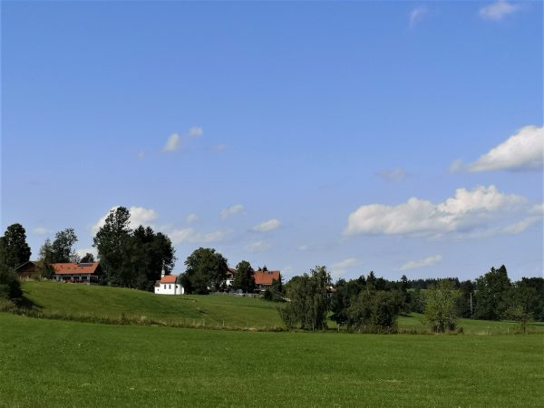 Blick auf die Nepomukkapelle im Weiler Günther (heißt echt so :-) ). Hier haben wir die Auerbergstraße überquert und folgen nun der Beschilderung Jägersteig.
