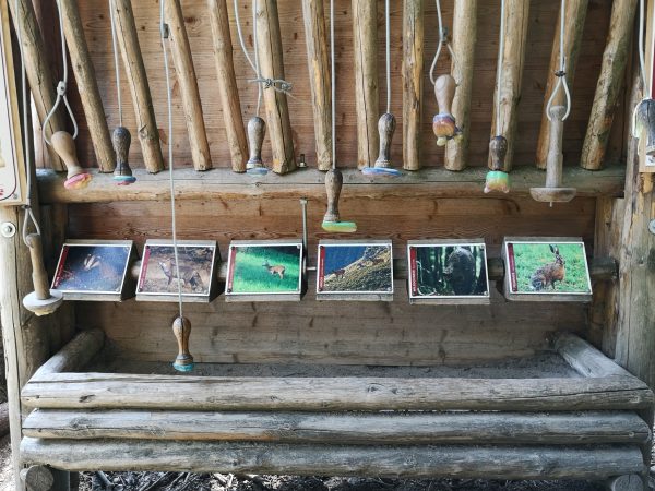 Überall entlang dieser Tour gibt es liebevoll angelegte Zwischenstopps mit Rätseln und Erläuterungen für Kinder. Hier kann man testen, welches Tier welche Spur hinterlässt. Macht auch Großen Spaß.