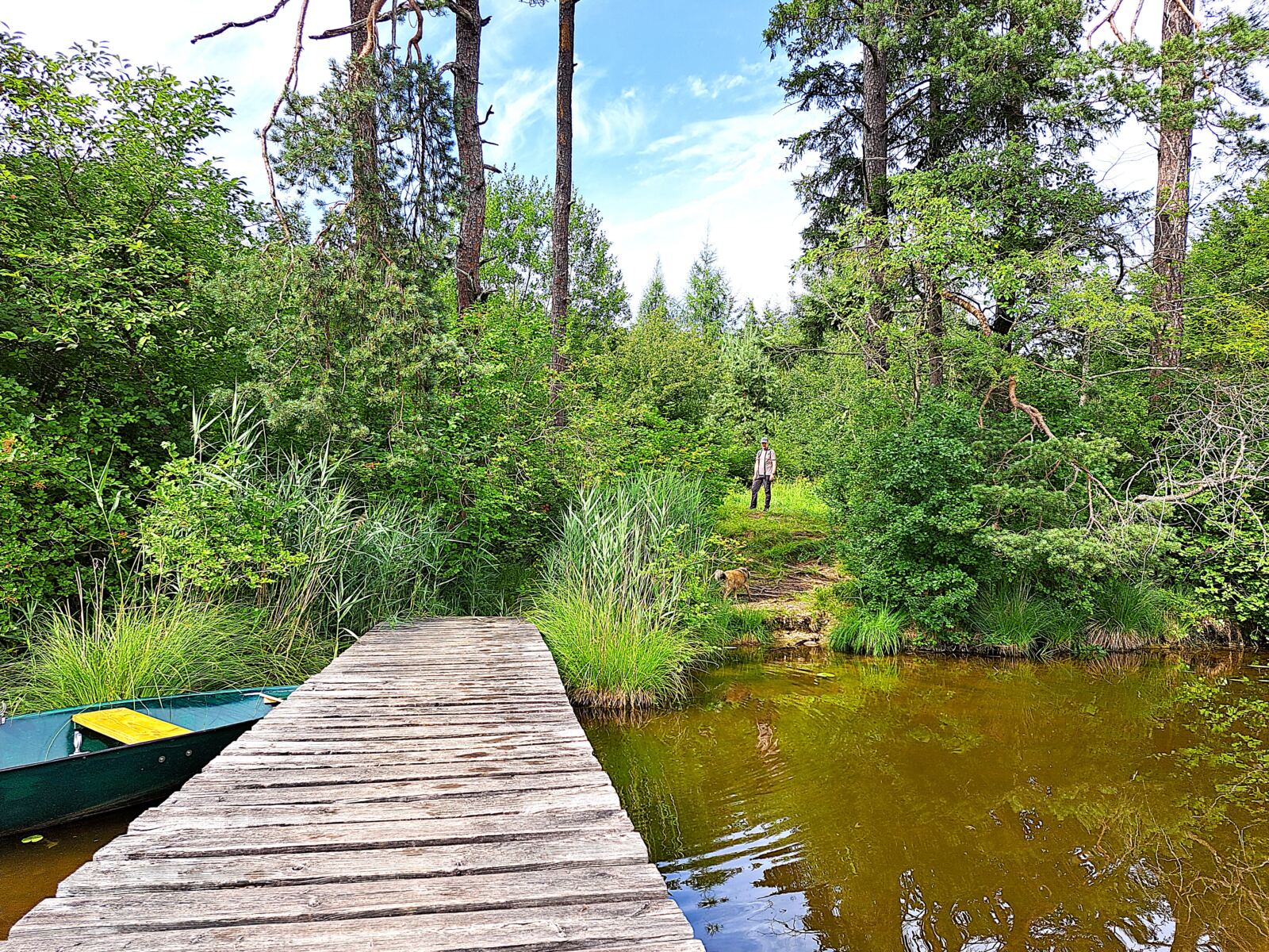 Einer der schönsten Rastplätze unterwegs: der Steg am Auweiher.
