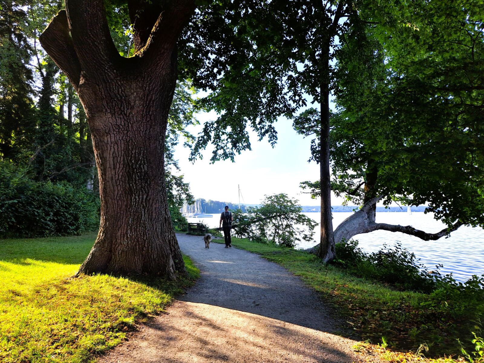 Kurz nach dem Start bietet sich ein herrlicher Blick über den Starberger See. Und zum Ende können wir die Tour in einem Café am Seeufer ausklingen lassen – mit Blick auf den Yachthafen oder den goldenen Zwiebelturm des einstigen Augustiner Chorherrnstifts. Traumhaft schön und entspannt. 🐕🐟🌳🥀⛵