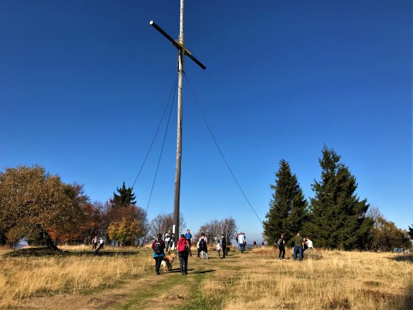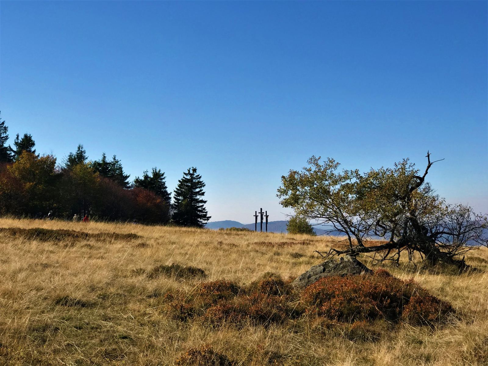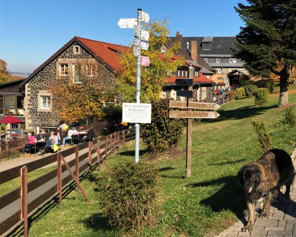 Der Kreuzberg ist mit knapp 928 Meter zwar nur der dritthöchste Berg der Rhön. In Sachen Bekanntheit steht er dem höchsten Rhön-Berg, der Wasserkuppe“ (950 m), aber in nichts nach. Er gilt als „heiliger Berg der Franken“. Jedes Jahr machen sich einige hundert Wallfahrer auf den Weg zum Kloster Kreuzberg. Sicher noch mehr Menschen lockt nicht die Kirche, sondern die hauseigene Brauerei der Franziskaner mit der schönen Klosterschänke an. An sonnigen Wochenende herrscht hier manchmal ziemlicher Trubel, Menschen zu Fuß und auf dem Mountainbike. Doch hinter den Golgata-Kreuzen auf dem Gipfel verläuft es sich schnell wieder. Hier findet man also auch mit Hund genügend Freiraum.