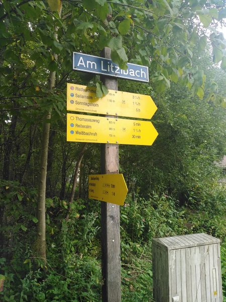Am Ausgangspunkt ist unserer Wanderparkplatz an der Bundesstraße ausgeschildert.