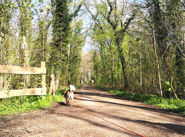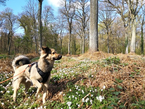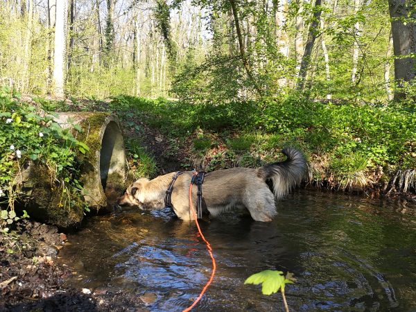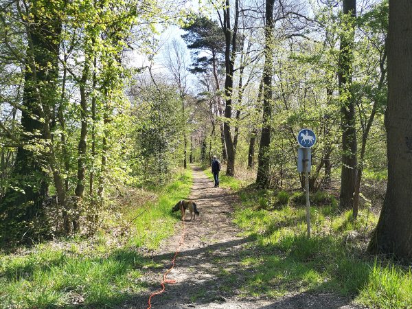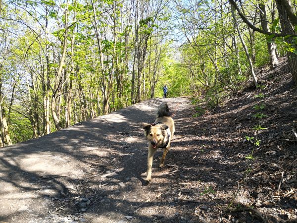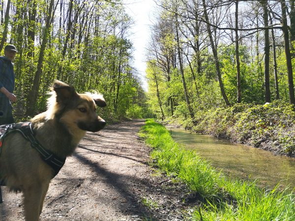 Lichter Wald, Vogelgezwitscher, Wasserläufe – und dann Weitblick über das ganze Ruhrgebiet! Diese Runde verbindet Natur, Industriekultur und Kunst zu einem beeindruckenden Erlebnis der Kontraste. Wunderschön mit Hund. Unter Füßen und Pfoten: überwiegend befestigte Forstpfade und Waldwege. Zwischendurch laufen wir parallel auf sandigen Reitwegen. Pferde begegnen uns hier immer wieder. Mehr Schatten als Sonne. Wir sind in den Naturschutzgebieten Köllnischer Wald und Schöttelheide unterwegs. Unser Amos läuft an der Schleppleine.