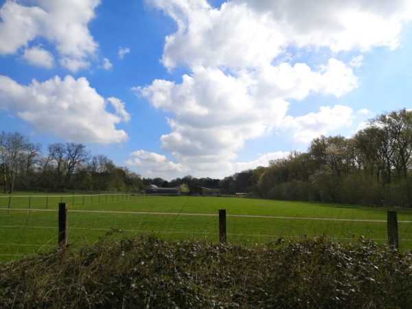 Wir verlassen die Landstraße und biegen bei nächster Gelegenheit auf den Weg am Gutshof ein. Die ersten Meter laufen wir auf dem Reitweg.