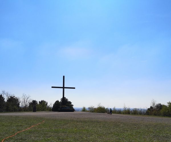 Auf dem Plateau steht das Kreuz mit dem Altar. Hier versammeln sich an Karfreitag gut 1.000 Menschen zum Gottesdienst.